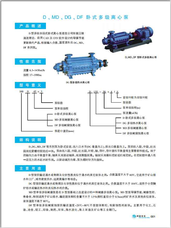 MD(P)型煤矿耐用多级离心泵(自平衡)